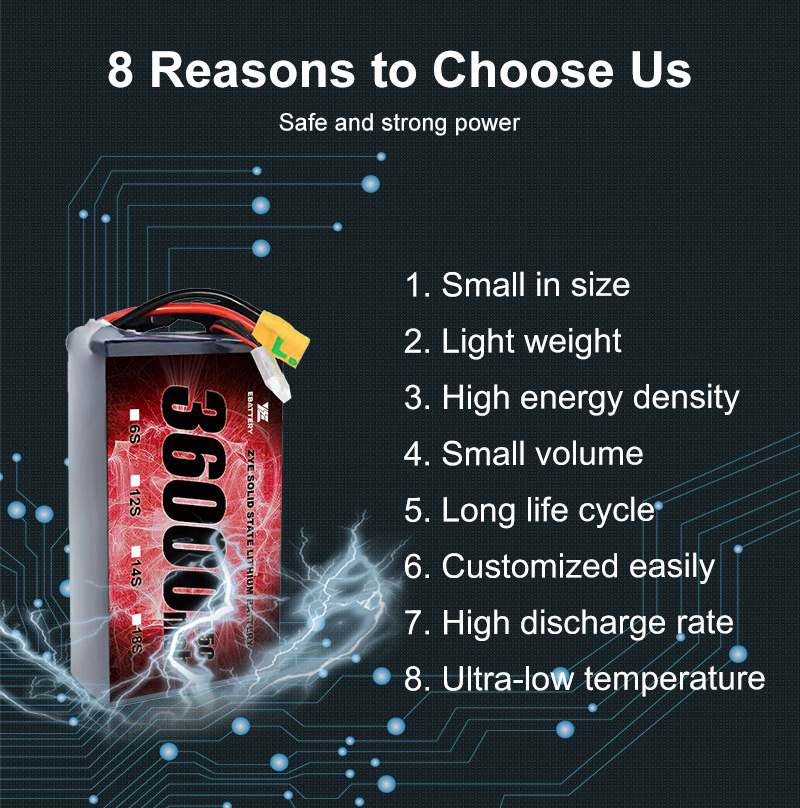 Hledáte posílení výkonu vašeho RC automobilu?Oko, přední výrobce pokročilých baterií, nabízí vysoce kvalitníRC auto baterieNavrženo tak, aby poskytovalo bezkonkurenční sílu a vytrvalost. Stejně jako naše renomovaná baterie Li HV 36000MAH 12s, naše baterie předaly přísné certifikace a fungovaly výjimečně i v extrémních podmínkách. Se Zye si nekoupíte jen baterii; Investujete do spolehlivosti a výkonu. Strávili jsme více než deset let zdokonalováním naší technologie a získávali důvěru zákazníků po celém světě. Když si vyberete Zye, vyberete si partnera určeného k poskytování nejlepší kvality a služeb.