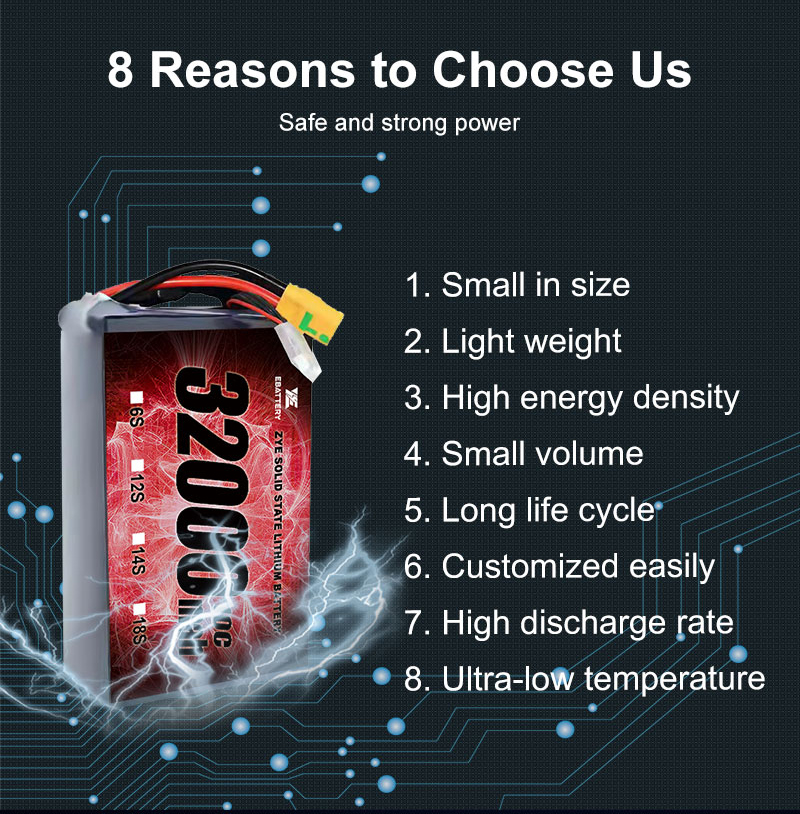 Inovativní technologie: špičková polotřídní řešení stavových baterií, včetněVlastní dobíjecí 3S4S6S 6500Mah polopekumná baterie pro drony malý letový drony, navržený tak, aby splňoval energetické potřeby malých UAV.