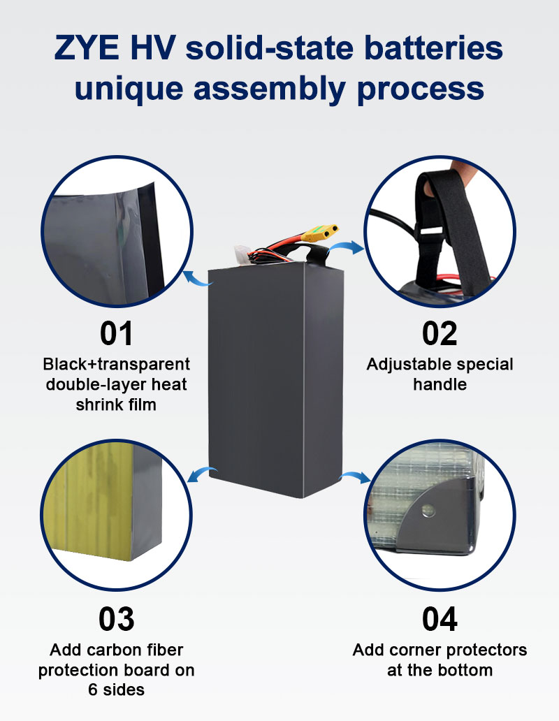 Zye EBattery je předním výrobcem specializujícím se na výrobu 18sPolotuhá Li-ion baterie, navržený pro širokou škálu aplikací včetně dronů, lodí, elektrických vozidel a dalších. Naše vysokonapěťové (HV) polovodičové baterie jsou navrženy tak, aby splňovaly náročné požadavky UAV a dronů a nabízejí výjimečnou výdrž a spolehlivost. Tyto pokročilé baterie poskytují dlouhotrvající energii a zajišťují optimální výkon v různých náročných prostředích. Ať už pro komerční, průmyslové nebo rekreační použití, naše baterie poskytují výkon a odolnost potřebnou pro podporu aplikací nové generace, díky čemuž jsou ideální volbou pro uživatele, kteří hledají efektivní a vysoce výkonná energetická řešení.