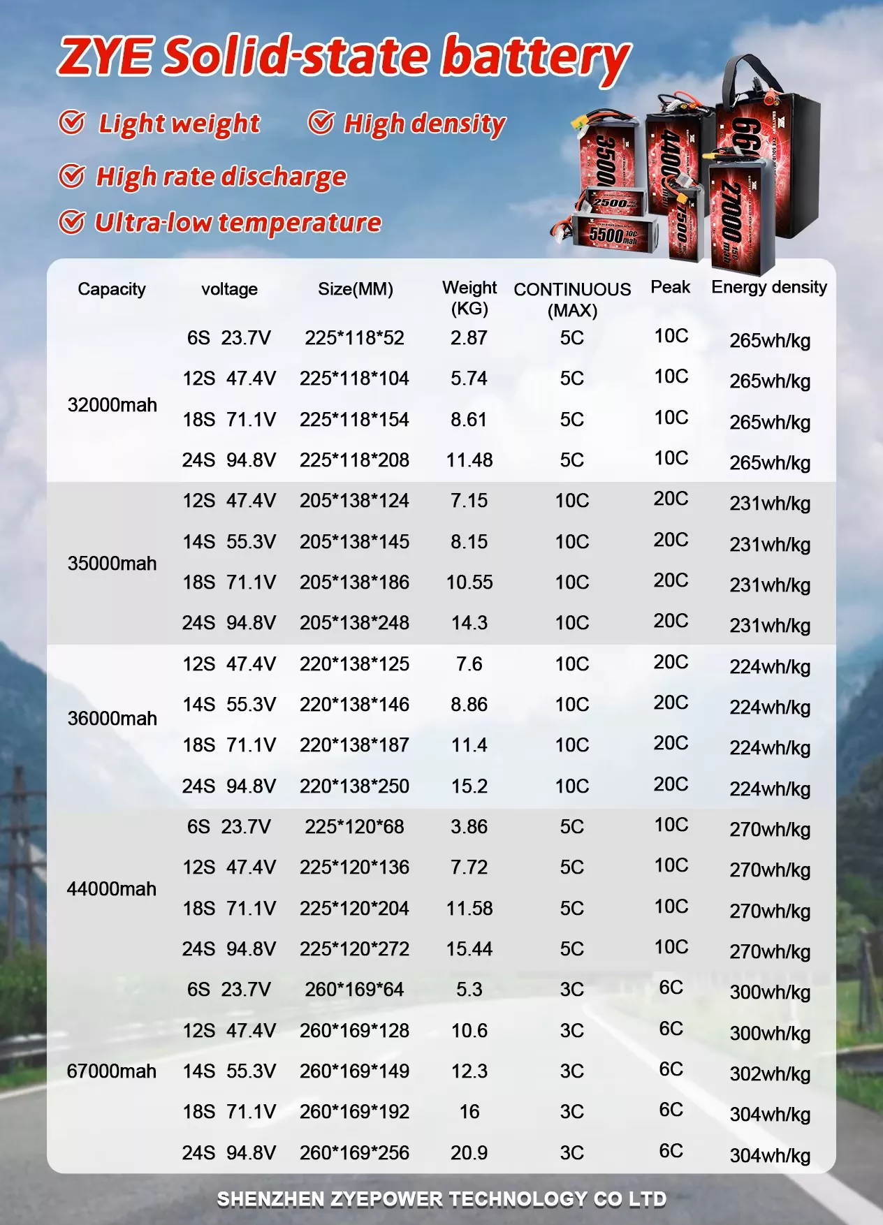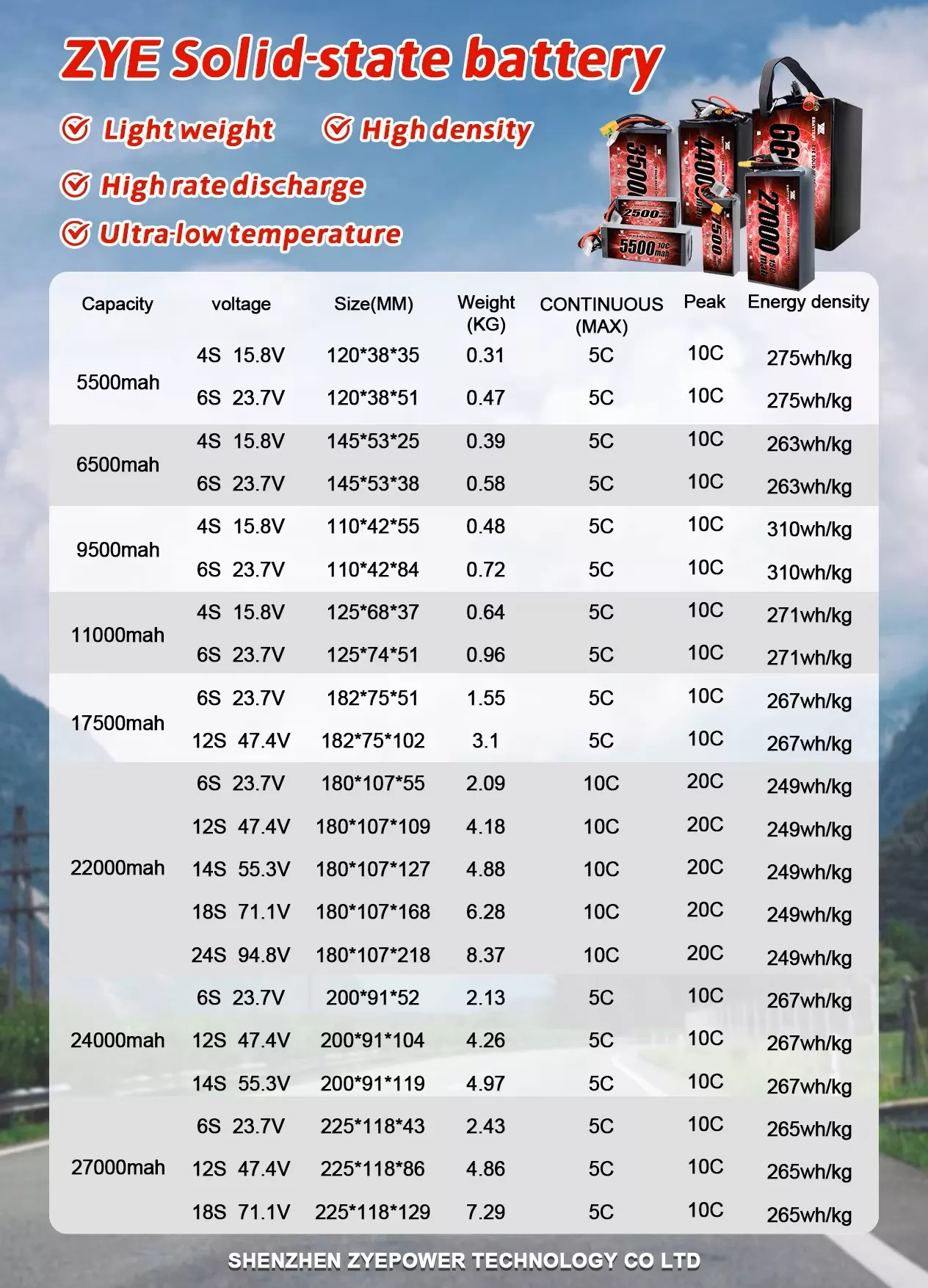 Přečtěte si víceOdeslat dotazZye je slavným dodavatelem LI HV 26000MAH s vysokou eenergickou hustotou pevných stavových baterií v Číně. Baterie produkované Zye lze široce používat ve filmu a televizi, na ochraně zemědělských rostlin, geologickém průzkumu, prevenci požáru lesů, povodňové reliéfy, monitorování životního prostředí a dalších oborech. Věřím, že to může přinést odlišnou zkušenost většině uživatelů.zye přijímá OEM/ODM přizpůsobení.